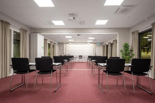 Rummet är fullt utrustat med projektor, whiteboard, blädderblock och höghastighetsinternet för att säkerställa en smidig och professionell mötesupplevelse. Möbleringen kan anpassas efter era önskemål, och vi erbjuder även skräddarsydda mat- och dryckeslösningar för att göra mötet så effektivt och bekvämt som möjligt.