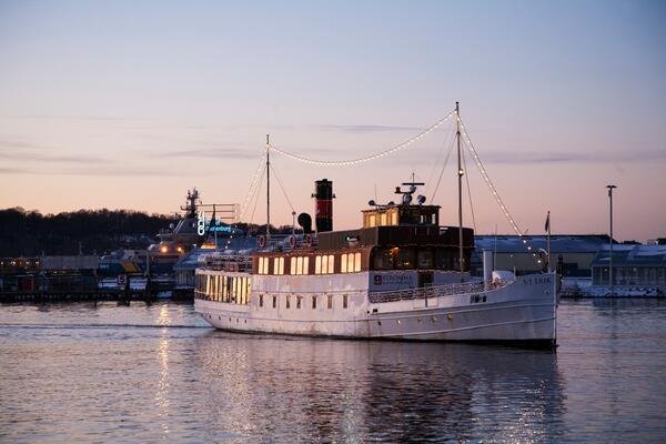 Vi hjälper er gärna att arrangera företagsevent, middagskryssning eller transport ombord på vår klassiska skärgårdsbåt.