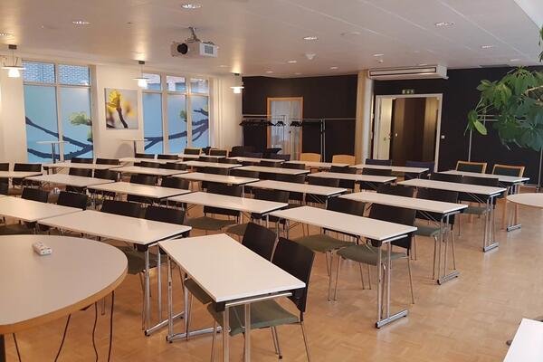 I lokalen finns projektor, elmanövrerad filmduk, elektriska mörkläggningsgardiner, whiteboard, högtalarsystem, trådlös mikrofon samt sladdmikrofoner, blädderblock, trådlöst internet. Lokalen har ett ljust och fräscht intryck och vi tillhandahåller er även med mat och fika under eventdagen.